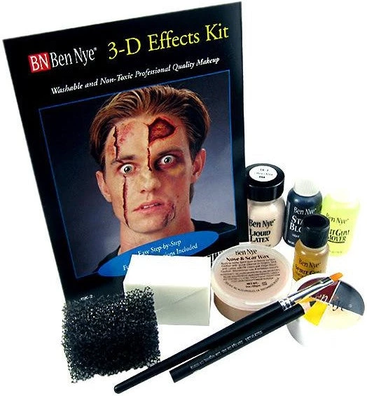 Hollywood quality components and step-by-step directions allow you to create realistic bruises, lacerations, burns, gashes, broken noses and abrasions. Components: Four color Special Effects Palette, Nose & Scar Wax, Stage Blood, Spirit Gum, Spirit Gum Remover, Liquid Latex, Flat Brush, Sponge Applicators, Stipple Sponge, Color Directions. (4-6 applications).