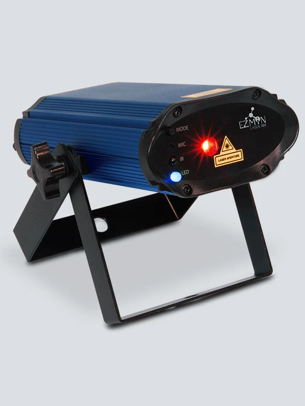EZMiN Laser RBX is an ultra-compact, portable battery-operated, variance-free laser, ready to use right out of the box. Projecting thousands of red and blue laser beams and motion effects, it has a run time of up to 6 hours from a single charge with the rechargeable, lithium battery. Create customized shows with independent control of red and blue laser diodes and easily generate eye-catching effects with sound-activated and automated programs. It covers a large, wide area and looks great with or without fog. Wirelessly set color and rotation speeds with the included wireless remote control.