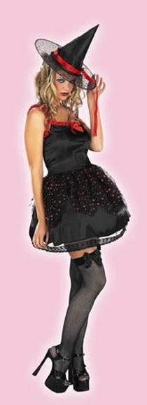 Costume includes dress, petticoat and hat, (Thigh high stockings not included.)