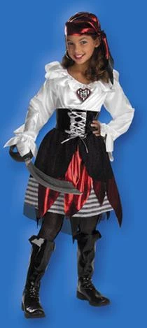 Deluxe costume includes dress, bandanna, sculpted broach and two boot covers. (Sword not included).