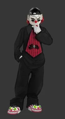 Deluxe costume includes oversized top, necktie with brooch, mask.
