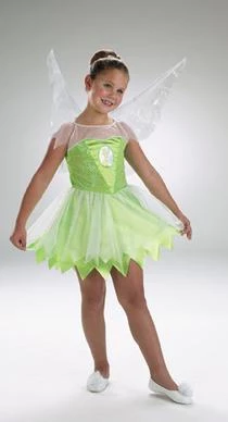 Costume includes green gliter dress with white sheer sleeves, character cameo art and inflatable wings.