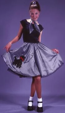 Costume includes dress with sequined poodle applique with crinoline slip and neckerchief.