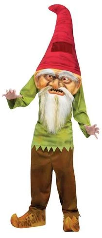 Costume includes shirt, pants, beararded gnome face hat and 2 shoe covers.
