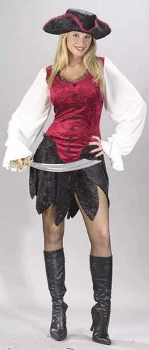 Two-tone scalloped dress with deluxe tricorn pirate hat. (Pirate sword, boots and pantyhose not included)