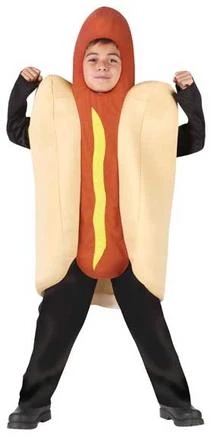 Costume includes pullover hot dog, bun and mustard tunic. (Pants and shirt not included)