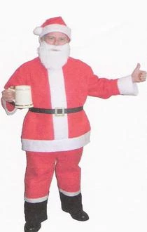 Not a real Santa suit but great for those party events. Fleece suit includes pull-over top, pants, hat, belt and beard.