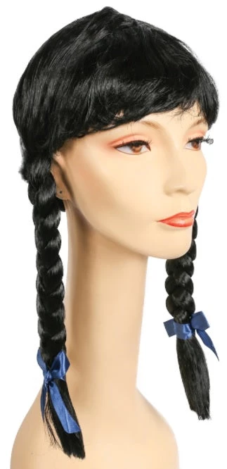 Braids Wig is a smooth synthetic wig with bangs. Suitable for Dorothy, Dutch girl or native character.