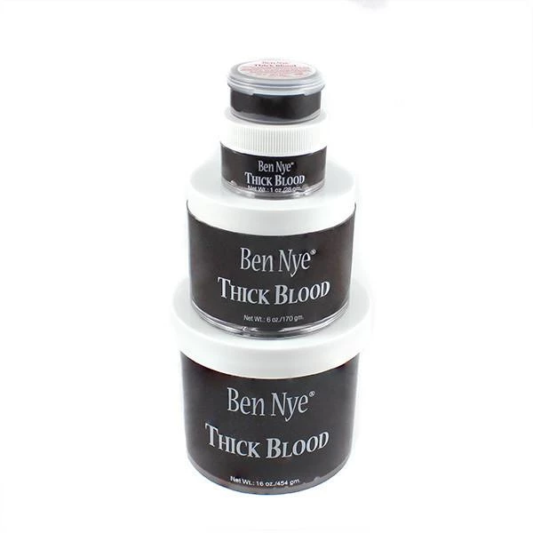Ben Nye’s Thick Blood is a moist, jam-like texture that can bea used to fill wounds. Creates a great chunk effect. Scrape Thick Blood along skin with a stipple sponge for an abrasion or road rash. Remove with Hydra Cleanse or soap and water.
