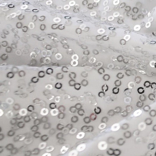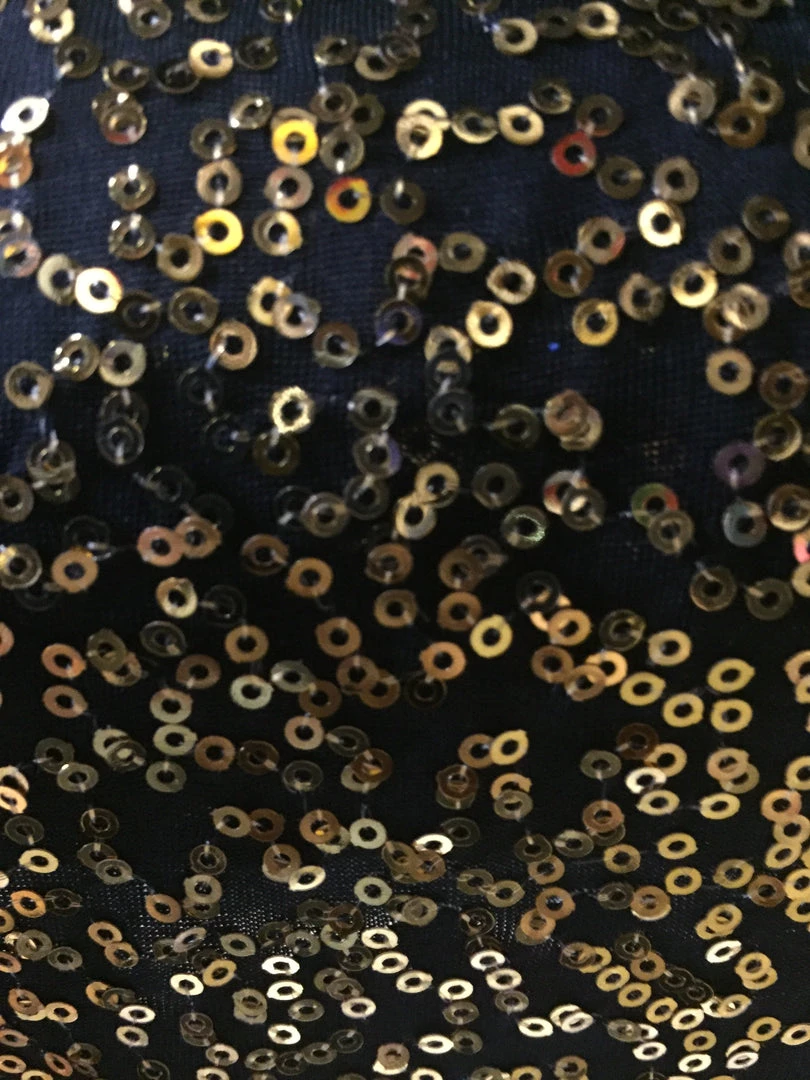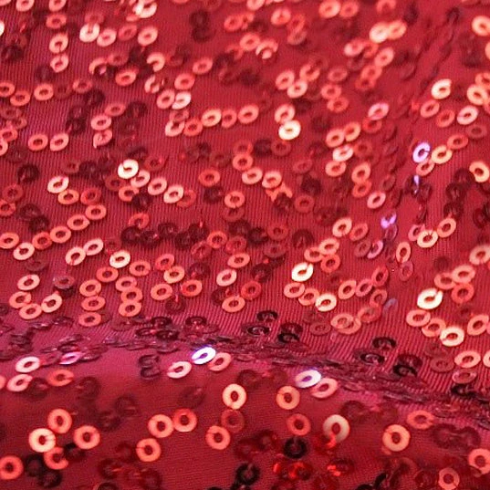 Bem Bem or Zsa Sequin Stretch is a sewn sequin on stretch. 92% polyester 8% spandex, 51″ usable. Hand wash in cool water, mild detergent line dry. Do not dry clean.