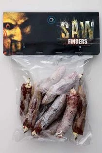 Latex fingers with protruding bone stumps.