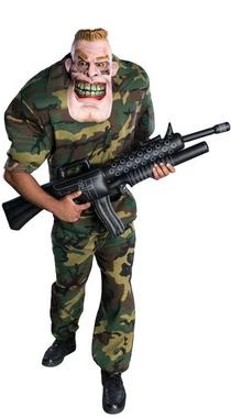 Costume includes Shirt, Mask, Bandolier & Inflatable Shoulders.