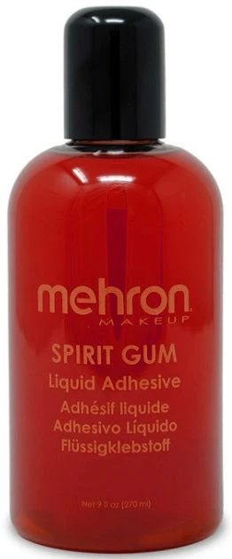 An amber colored, alcohol/resin liquid adhesive solution for adhering Crepe Hair, wigs, prosthetic noses, bald caps, etc.