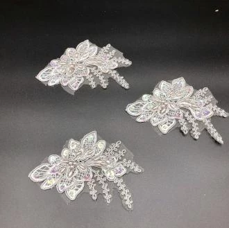 Beautiful, elegant, embroidered applique with beads and sequins. Sold in pairs for $5.95.