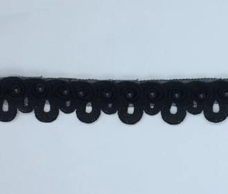 Elegant Embroidery Loop with Pearl Trim comes in ivory and black. The ivory would make a great accent for wedding garments and other formal occasions.