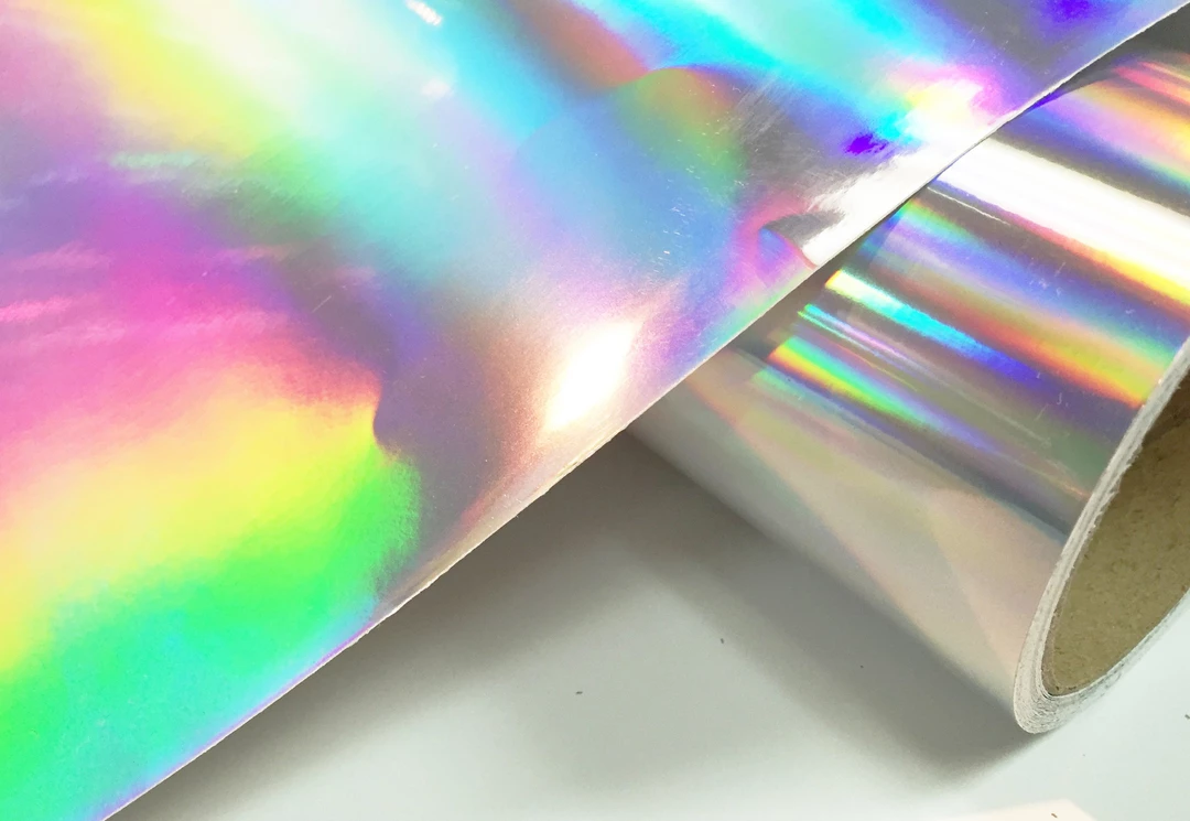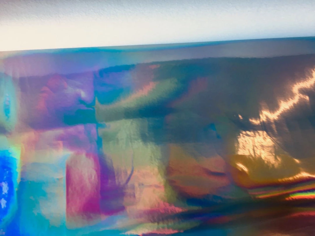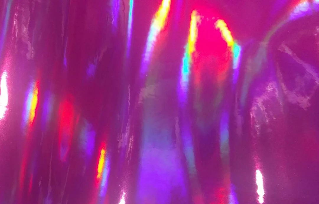 This is Holographic Vinyl used to make bags, clothing, upholstery and other fashion item. This has a knit back and is very thick, almost leather like, but is very malleable as well.