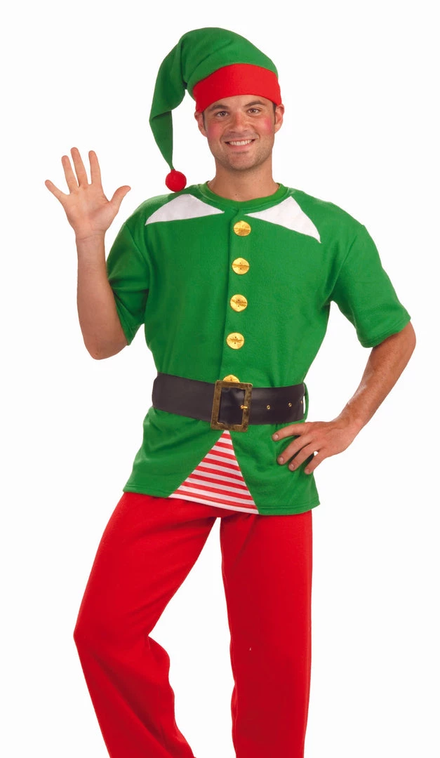 An elf is a welcome addition to any Holiday or Christmas party. Includes: HAT, SHIRT & BELT.