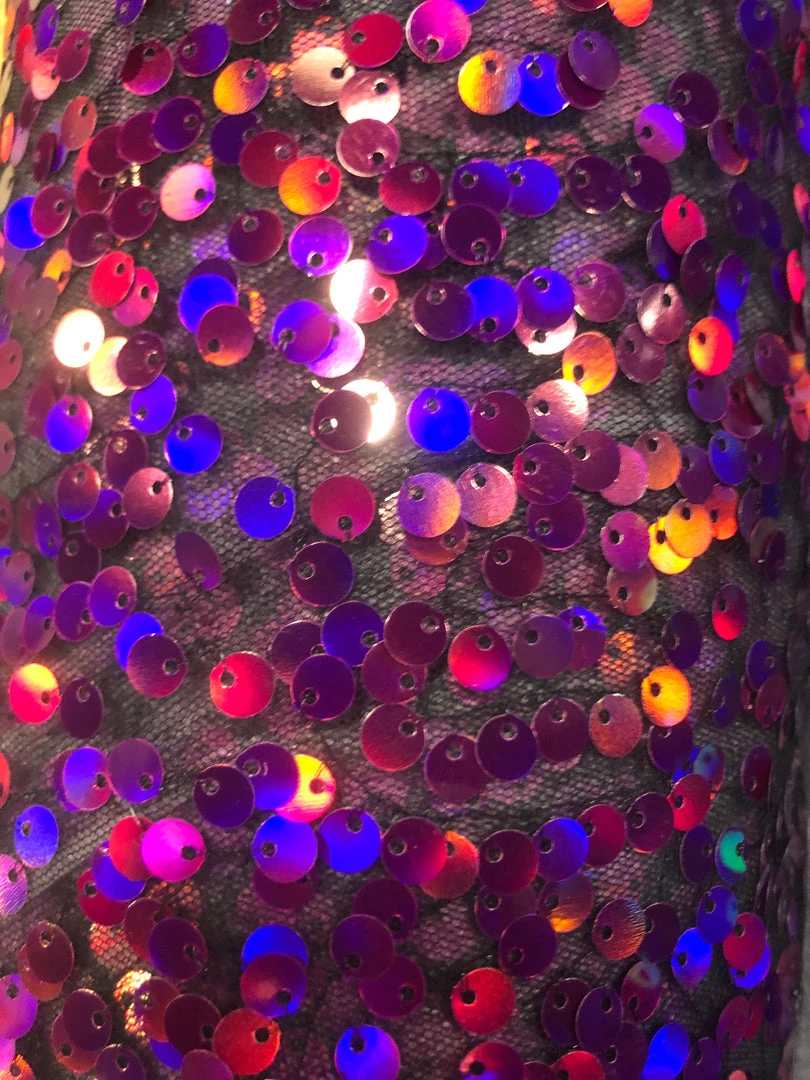 Black mesh with either Fuchsia or Turquoise dangle sequins.
