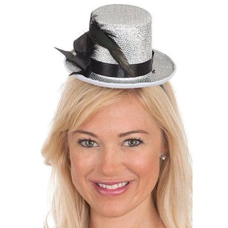 Mini Glitter/Lame Topper Hat on a headband. Latest fashion accessory. Great for dance, steam punk or a touch of glam. On a headband, one size fits most.