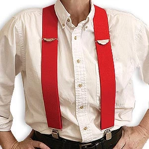 Red Suspenders are made of an elastic material with stitched back and adjustable metal clips for sizing up to 46″. Great for any costume or every day wear. 2″W