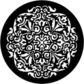 Antique Rosette pattern gobo. Standard size “B” stainless steel disc made to fit an ellipsoidal fixture with a 6″ lens and a 4 1/2″ gate.Gobo patterns are used to suggest scenery, create atmosphere and enhance the visual impact of your lighting design. To browse the entire line of designs, visit www.rosco.com.