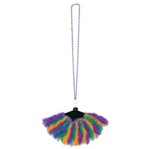 Keep cool with this Beaded Necklace with Mardi Gras Feather Fan.
