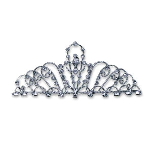 Princess Tiara in silver plated metal with rhinestones and hair combs. 2″H