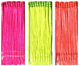 Blacklight fringe is a 6″ long rayon trim which glows under blacklight. Blacklight fringe is a great addition to complete many types of costumes such as dance, cheerleading, ice-skating, and ballroom. It is also great for decorating. This size is ideal for layered flapper dresses. Sold by the yard. Dry clean only.