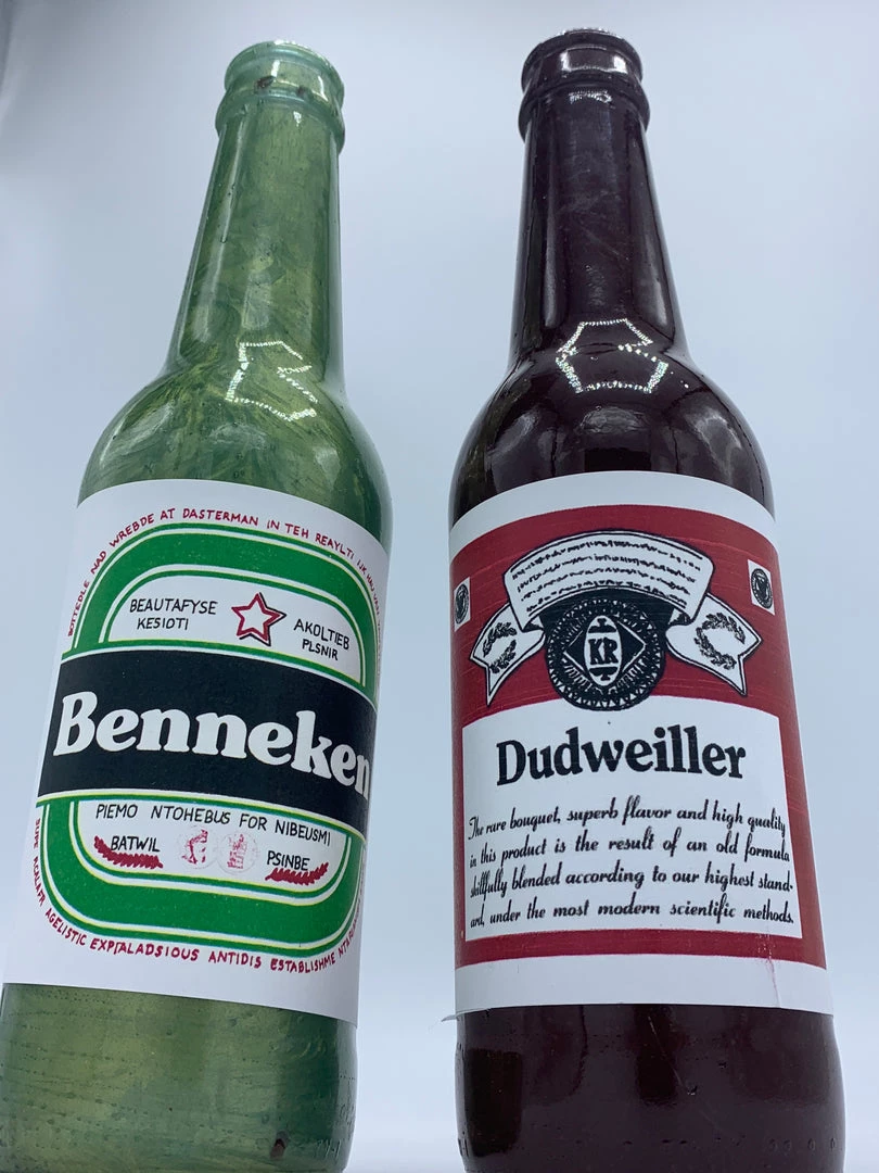 Plastic bottles that shatter realistically upon impact. They are specially packaged to assure they are delivered in tact. Labels are sent unattached. Sold individually.