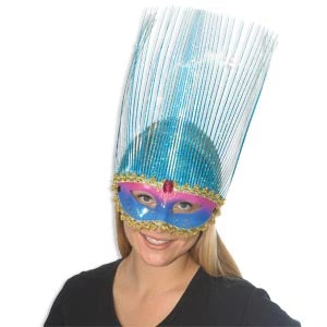 Carnival Mask w/Laser Fringe is Fun, Fun, Fun!! Colorful mask with long, shiny, holographic fringe.