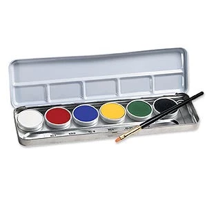 PRIMARY: Easy Palette includes six essential paint shades for face, character or body painting and a useful flat brush. White, Black, Blue, Red, Yellow and Kelly Green. (75-300 applications), refills available.