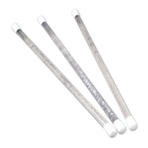 Baton in hard plastic filled with liquid and glitter. 18″L