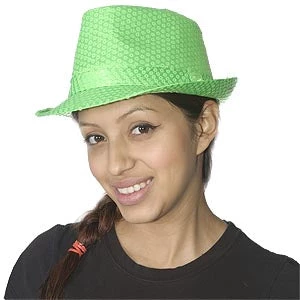 Neon Sequin Fedora in two popular glow colors. Fedora is cloth with sewn on sequins. Glows under black-light. One size fits most. 21″C