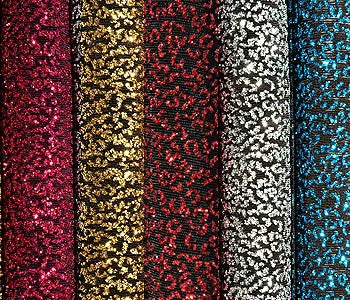 Dance Like A Star is black slinky fabric with hologram glitter. Sold by the yard. 95% acetate, 5% spandex. 58″W