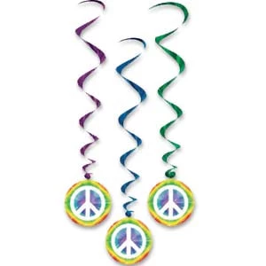 Peace Sign Whirls are fun decor for your hippie theme party. 5 Pieces. 3’4″L