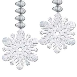 Snowflake Danglers in foil prismatic paper to add shine to your winter theme. 2 pieces. 30″L