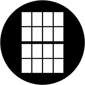 Double Hung Window pattern gobo. Standard size “B” stainless steel disc made to fit an ellipsoidal fixture with a 6″ lens and a 4 1/2″ gate.Gobo patterns are used to suggest scenery, create atmosphere and enhance the visual impact of your lighting design. To browse the entire line of designs, visit www.rosco.com.