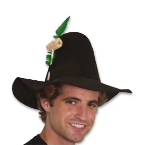 Felt Hillbilly style hat. Feather & pipe included. Black only. Feather and patch colors may vary. One size fits most.