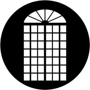 Georgian Doors pattern gobo. Standard size “B” stainless steel disc made to fit an ellipsoidal fixture with a 6″ lens and a 4 1/2″ gate.Gobo patterns are used to suggest scenery, create atmosphere and enhance the visual impact of your lighting design. To browse the entire line of designs, visit www.rosco.com.
