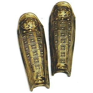 Intricate detailing on these antique brushed, plastic leg guards. Ties for sizing.See all “Legend” pieces to complete your set.May incur additional freight if shipped air.