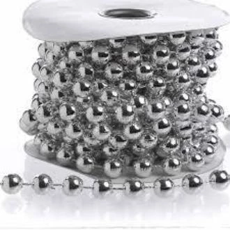 8mm silver beads are threaded on thin nylon cord and are sold by the yard.