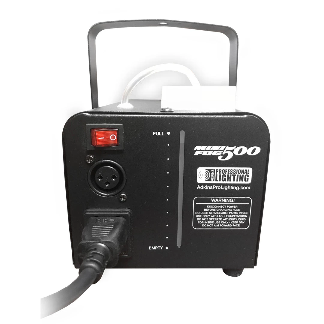 This Adkins Professional Fog Machine is a 500 watt fogger that includes a wired remote control. This fog machine uses water based fog fluids and displaces up to 2,000 cubic ft. of fog per minute. 110 – 120 VAC.