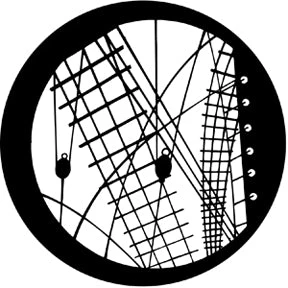Captains pattern gobo. Standard size “B” stainless steel disc made to fit an ellipsoidal fixture with a 6″ lens and a 4 1/2″ gate.Gobo patterns are used to suggest scenery, create atmosphere and enhance the visual impact of your lighting design. To browse the entire line of designs, visit www.rosco.com.