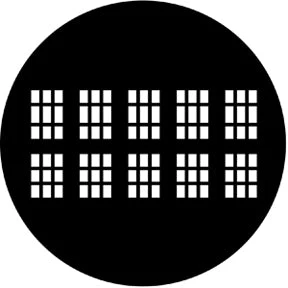 Elizabethan pattern gobo. Standard size “B” stainless steel disc made to fit an ellipsoidal fixture with a 6″ lens and a 4 1/2″ gate.