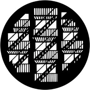 Fire Escapes pattern gobo. Standard size “B” stainless steel disc made to fit an ellipsoidal fixture with a 6″ lens and a 4 1/2″ gate.Gobo patterns are used to suggest scenery, create atmosphere and enhance the visual impact of your lighting design. To browse the entire line of designs, visit www.rosco.com.