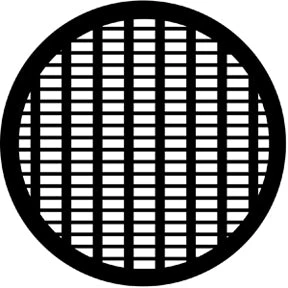 Les Mis pattern gobo. Standard size “B” stainless steel disc made to fit an ellipsoidal fixture with a 6″ lens and a 4 1/2″ gate.Gobo patterns are used to suggest scenery, create atmosphere and enhance the visual impact of your lighting design. To browse the entire line of designs, visit www.rosco.com.