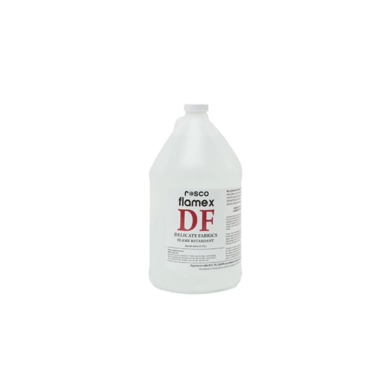 Rosco Flamex DF for delicate fabrics w/ soft drape. (products that may be prone to spotting, stiffening & powdering). 1 Gallon