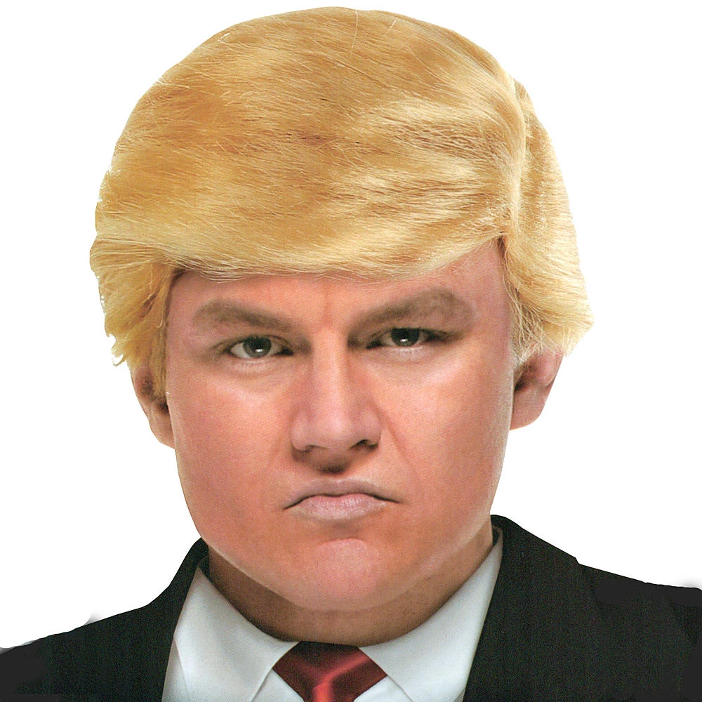 Billionaire “you’re fired” wig. Trump in a full head of blonde. One size fits most.