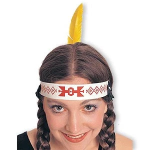 Pocahontas Indian Headband features one feather. NOTE: Color of feather may vary.