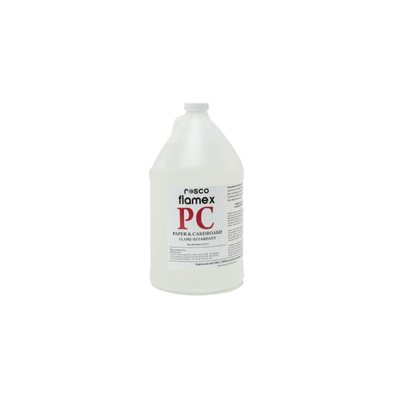 Rosco Flamex PC for paper and unwaxed cardboard. Less likely to yellow paper and is perfect for props artisans and “junk” sets. Gallon.